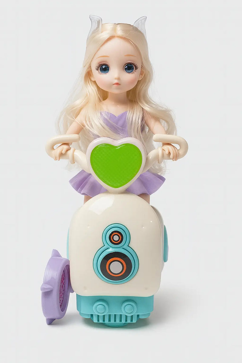 Is Princess Doll Scooter Toy ke sath aapke bachon ka playtime hoga aur bhi exciting. Ek stylish blonde doll purple dress me, apne cute scooter par adventure ke liye ready hai.